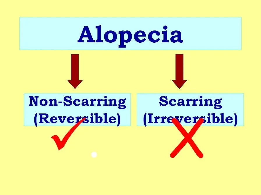 NB : How to differentiate between them clinically ? By looking for ( hair ostia ) by the scope→ if they intact then the alopecia is Non scaring and vise versa