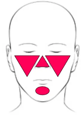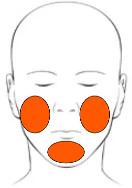 - Cheeks and chin: