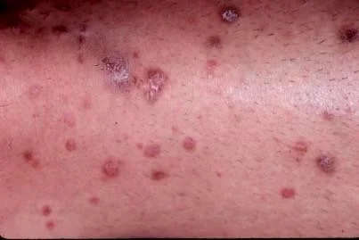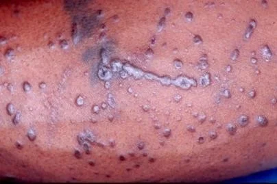 Neighbouring papules may join together to form plaques that resembles lichen growing on trees.