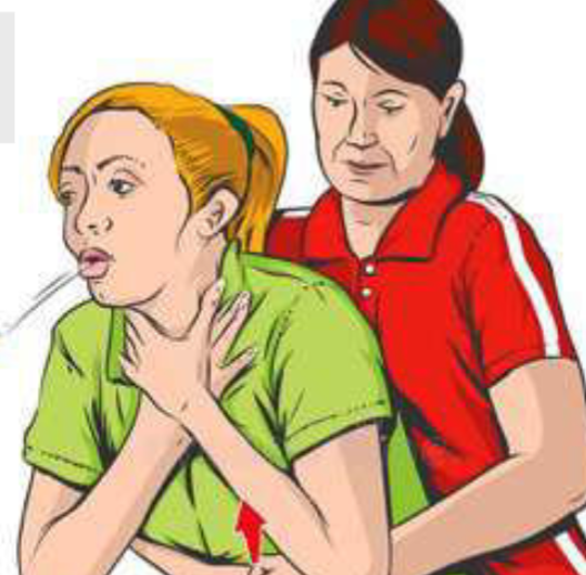 - In case of choking in adults