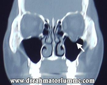- Blowout fracture due to injury of the maxillary sinus.
