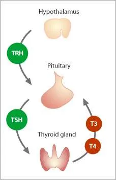 - Thyrotropin-releasing hormone (TRH) from hypothalamus stimulates the pituitary to release TSH.