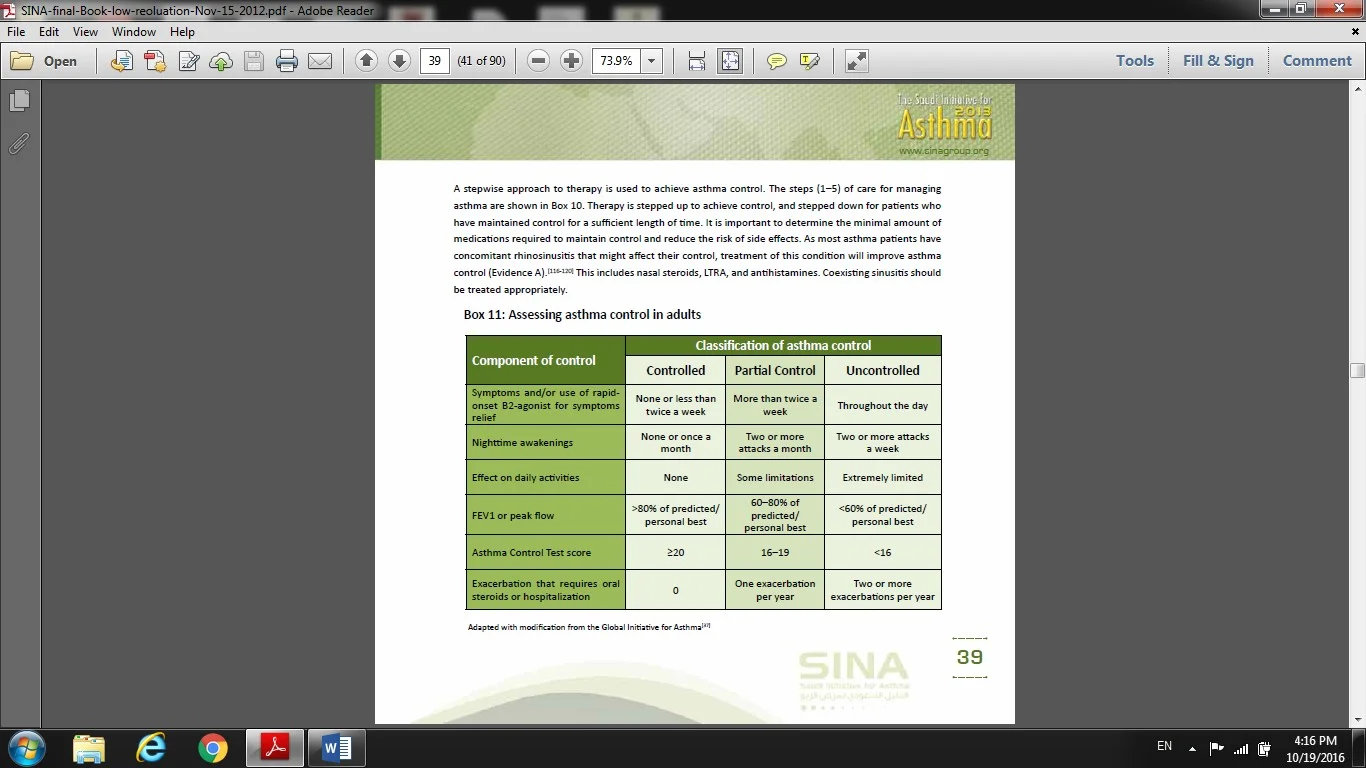 - In outpatient management of asthma in children aged 5–11 years, according to SINA 2016.