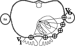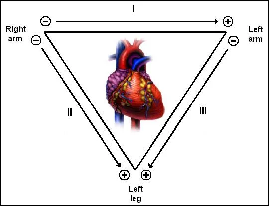 - One point on the body and a virtual reference point with zero electrical potential, located in the center of the heart