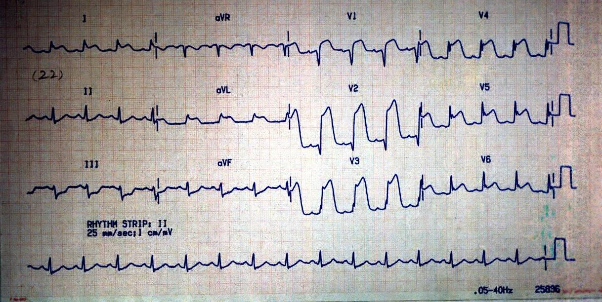This person’s MI involves both the anterior wall (V2-V4) and the lateral wall (V5-V6, I, and AVL) !