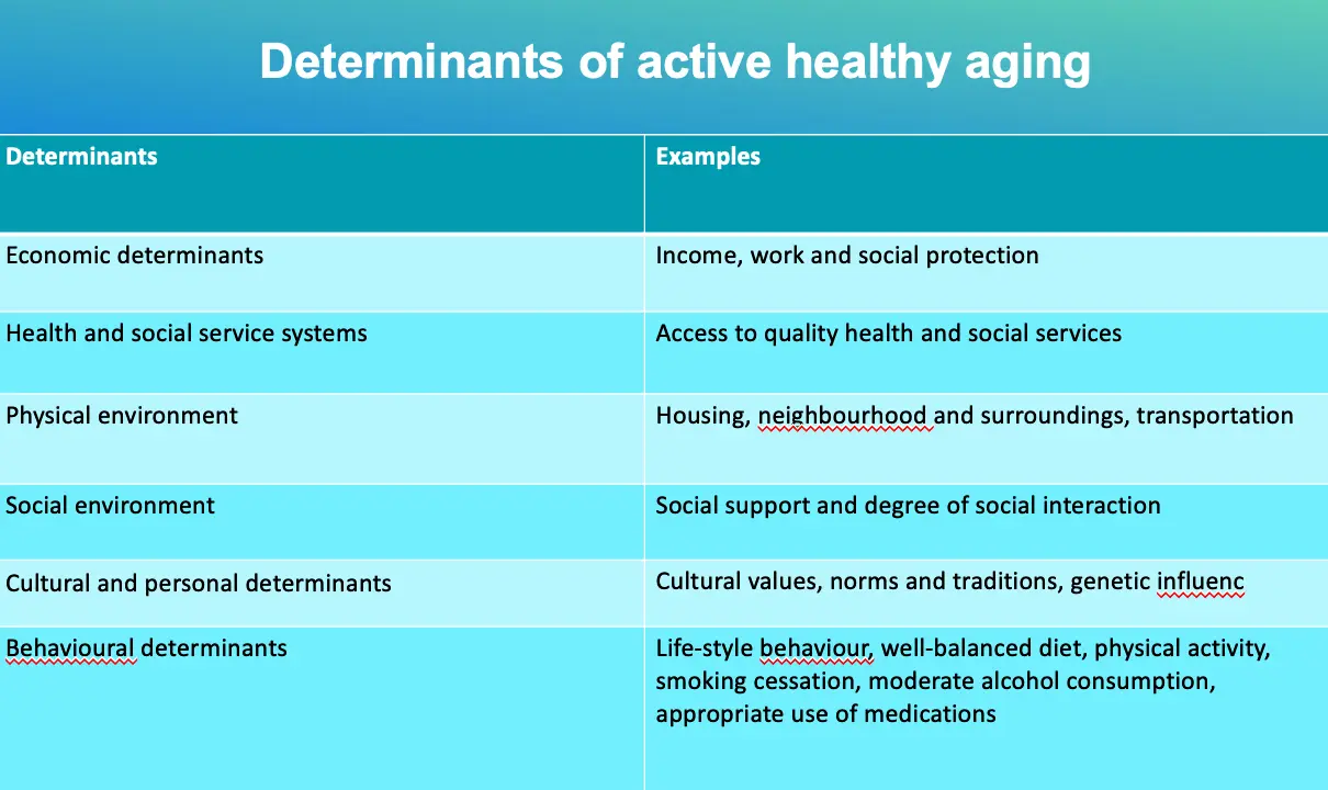 Determinants of Active Healthy Aging