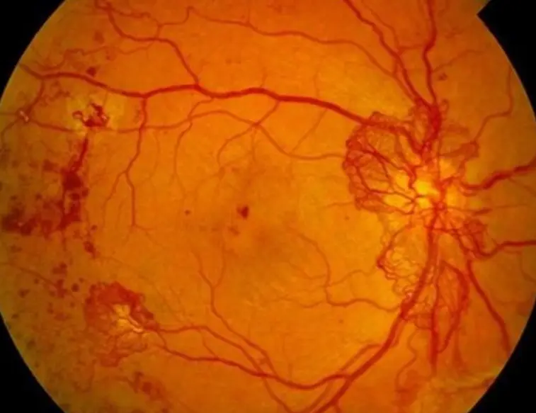 PDR; proliferative diabetic retinopathy insulin depedent HBA1c is high, or NPDR; non proliferative diabetic retinopathy