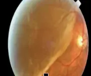A 38-year-old healthy female presented for a routine eye exam because she was running on contacts lenses, had not been seen in a year and she needed new lenses. She had an ocular history of high myopia but was a successful user of daily wear disposable contact lenses. After change of the lens she noted no any improvement in her left eye. Left VA was 3/60 while OD VA was 6/9.She said that she began to notice vision loss inferiorly (sup detach) one week prior, which progressed to central vision loss two days prior to exam. Upon a dilated fundus examination, there was a retinal lesion shown in the photo. Both clear corneas, clear lenses, Normal IOP and reactive pupils