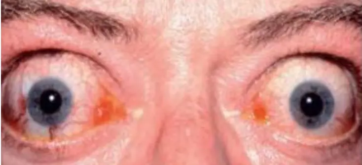 Proptosis or Proptosis due to thyroid disease (according to the case )