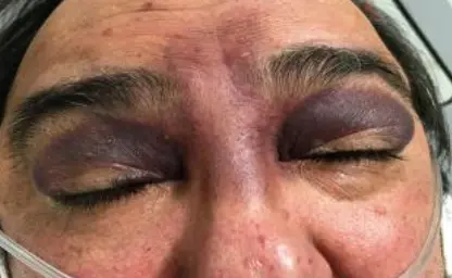 • CT Finding: Biconvex (Lens-shaped) hyperdensity; does not cross suture lines.