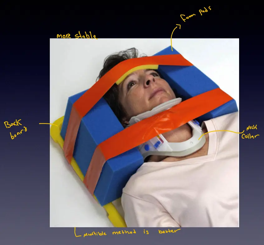- Multiple Methods: Foam pads + Neck Collar + Backboard is better.