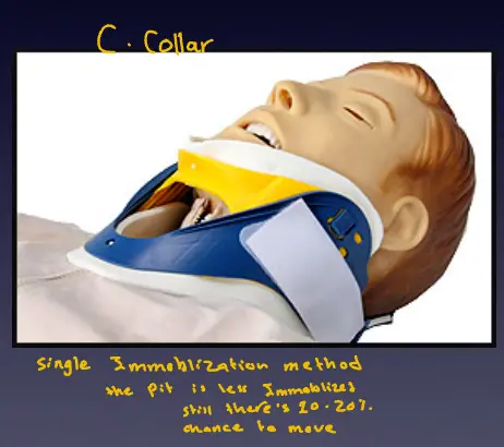- Single Immobilization (C-Collar): Patient is less immobilized; there is still a ~20% chance of movement.