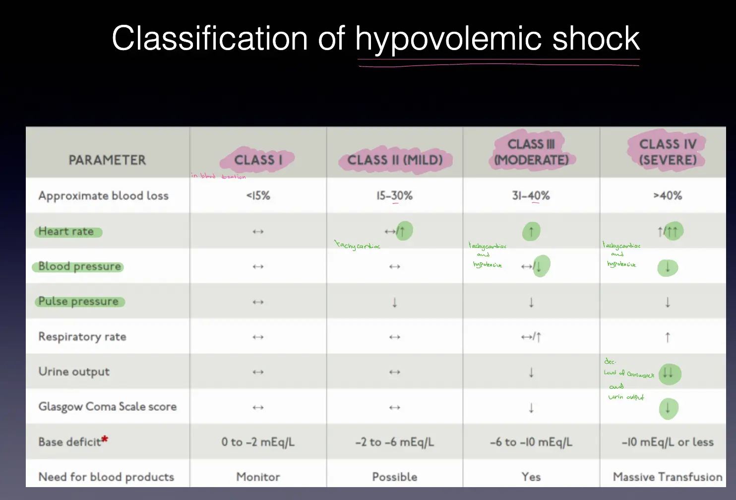 | Approximate blood loss | <15% | 15-30% | 31-40% | >40% |