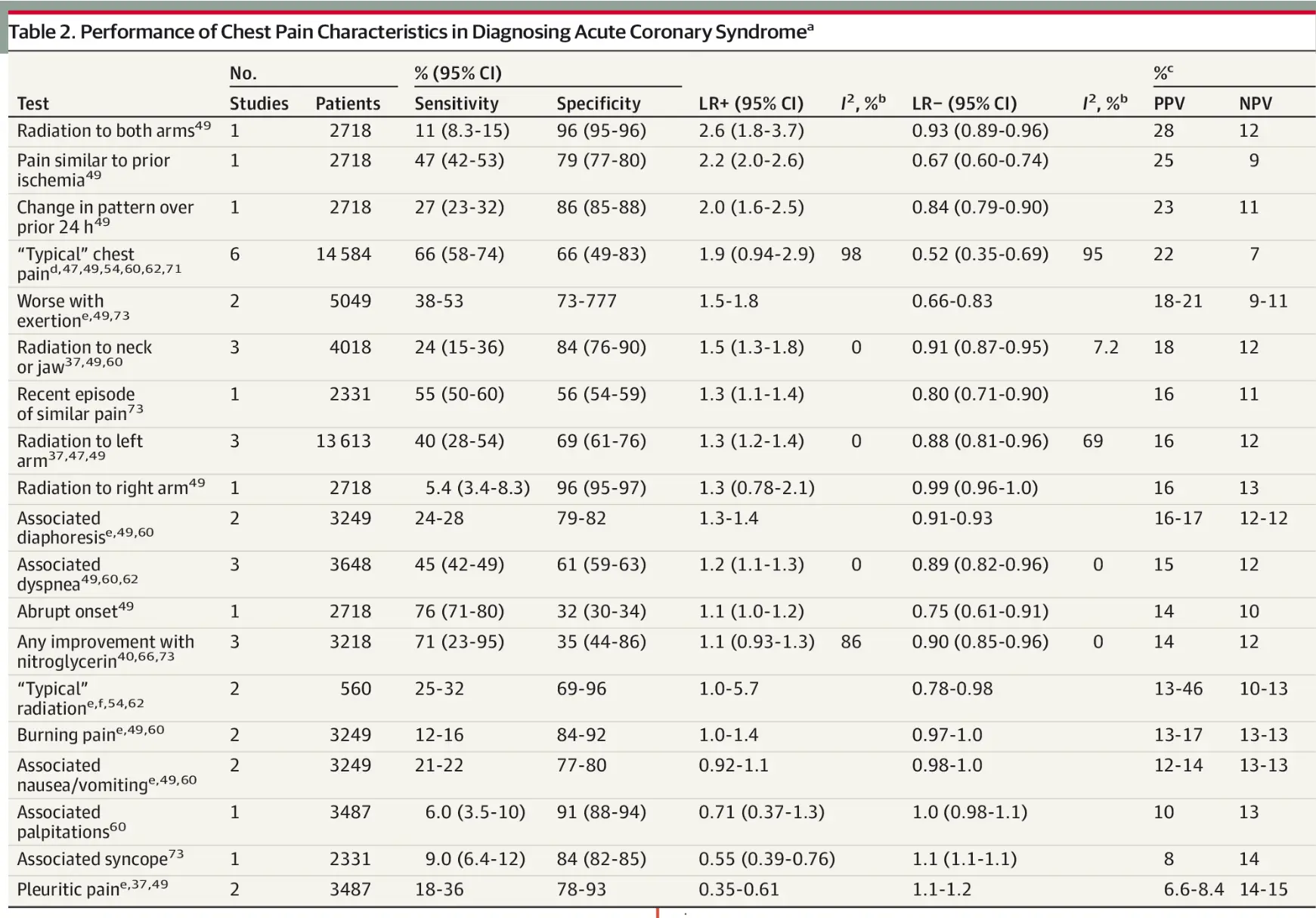 - Differential diagnosis of chest pain