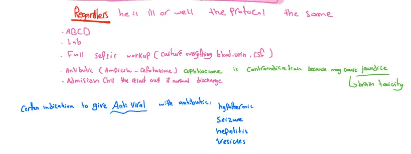 - Full sepsis workup (culture everything blood, urine, CSF)