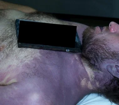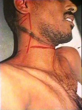 - Severe congestion and cyanosis above the level of compression, frequently with a sharp line of demarcation.