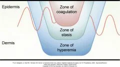 Burn injury causes coagulative necrosis of the epidermis and underlying tissues. Burns bring cellular damage primarily by transfer of energy inducing coagulative necrosis. Chemicals and electricity cause direct injury to cell membrane in addition to the transfer of heat. The burn injury of the skin has been divided into three zones of coagulative necrosis