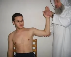 - Examiner holds patient’s wrist