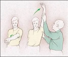 Positive test result: shoulder pain between 60° and 120° indicates subacromial or rotator cuff disorder.