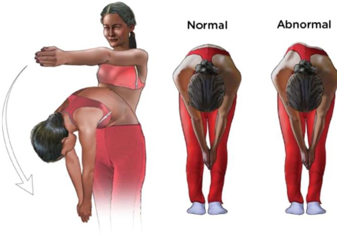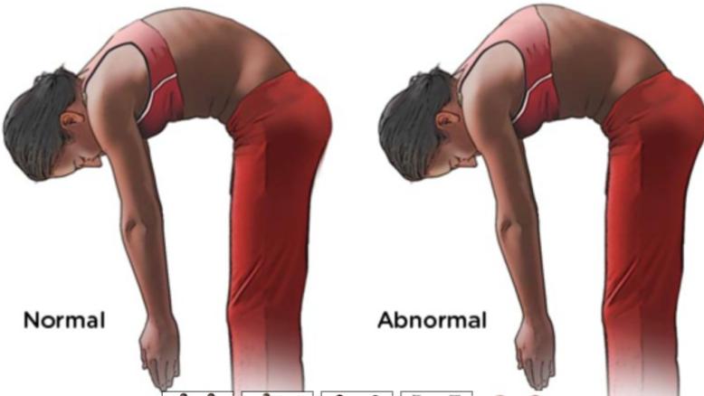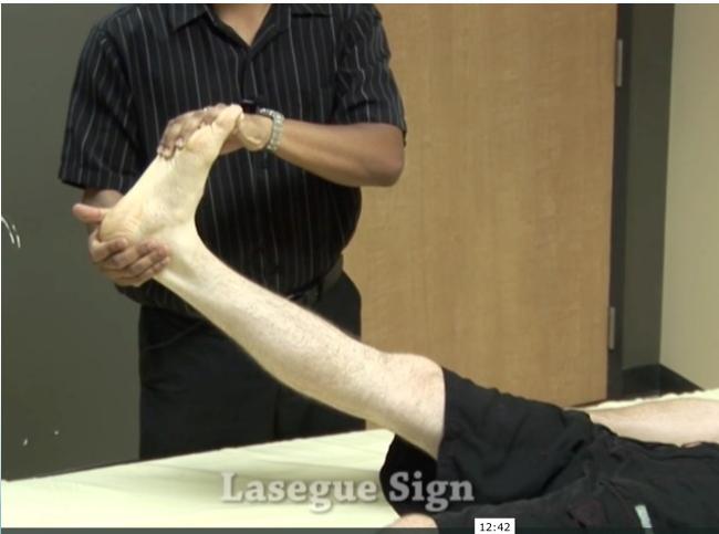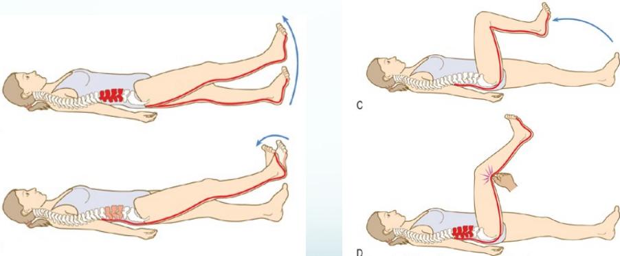 - Clinical Findings: Limited forward flexion of spine, positive SLR test