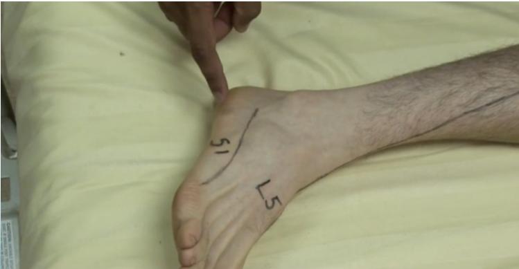 - Disc prolapse in L4-5, going to the right (as mentioned in scenario)