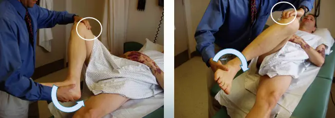 | Knee | ACL tear, meniscal tear, OA | Mechanism of injury, special tests, age |