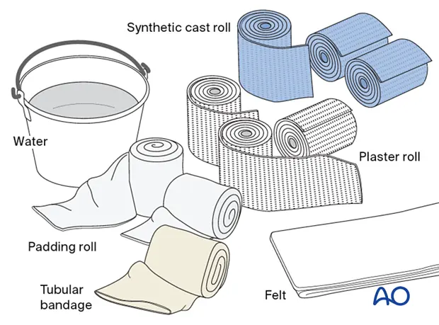 - Types of Casts (techniques), traction (techniques), Splints, nails, implants, slings, and mobility aid