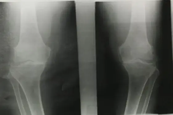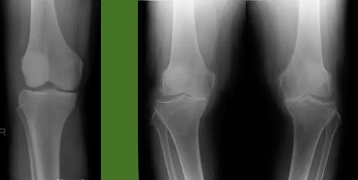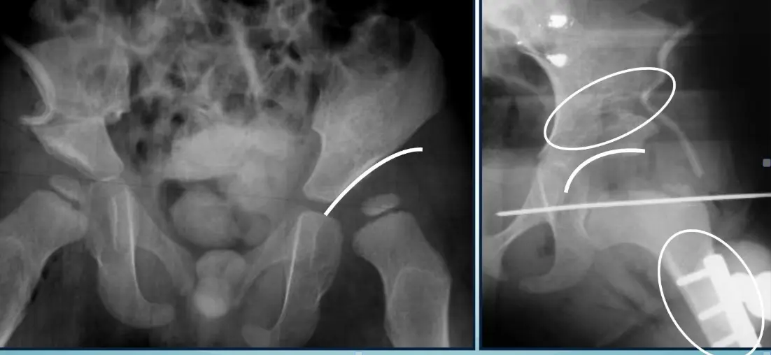 - X-ray demonstrating early joint space changes in pediatric hip septic arthritis.