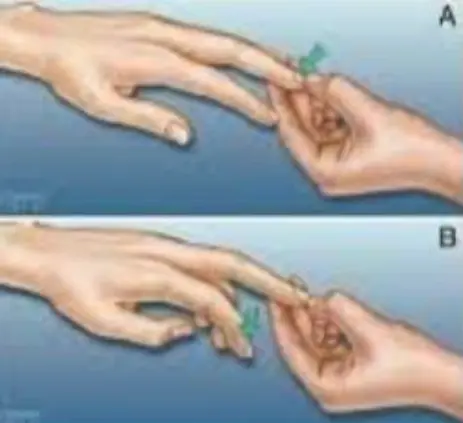 - Dorsal dislocation of proximal interphalangeal joint showing angular deformity from hyperextension.