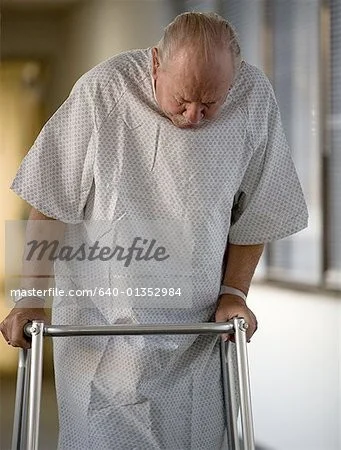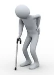 - limping, in pain, using stick, …