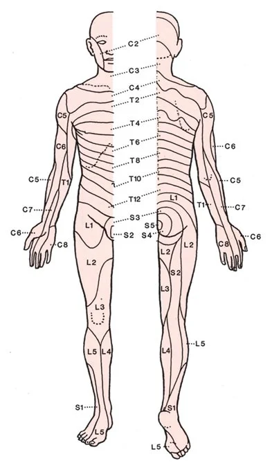 - Dermatomes: