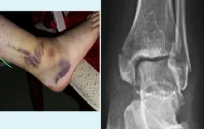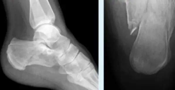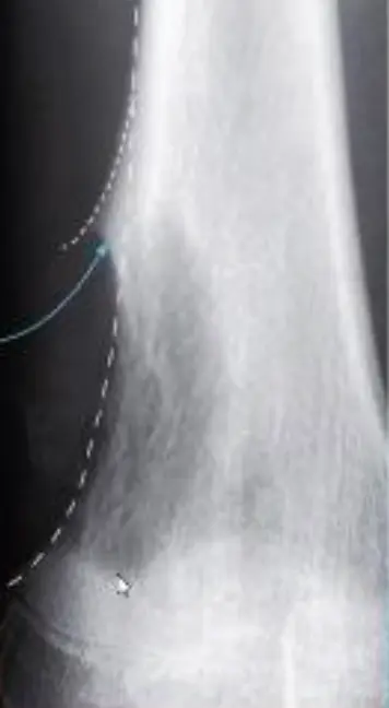 Q5/ A patient came with pain and the physician ordered X-ray to figure out the cause. According to his X-Ray, what could be the cause of his pain?
