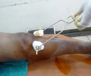 Case: A man involved in a road traffic accident (RTA) where a car ran over his forearm. X-ray showed fracture of the forearm.