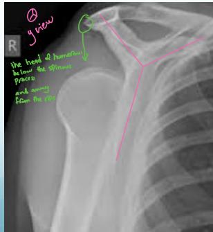 - Rule-out fractures: neck, lesser tuberosity, glenoid