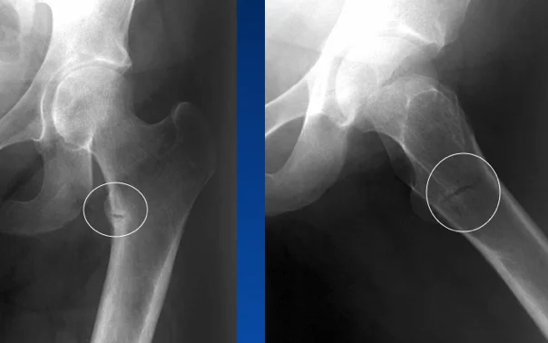 - Fractures caused by trivial force on abnormally weak bone. Seen in:
