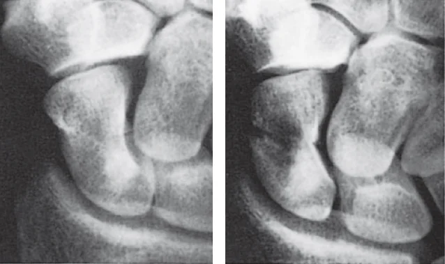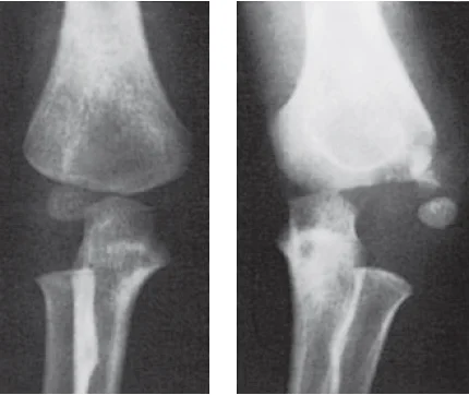 - Resisted muscle action, or where ligaments and tendons pull a bone fragment off