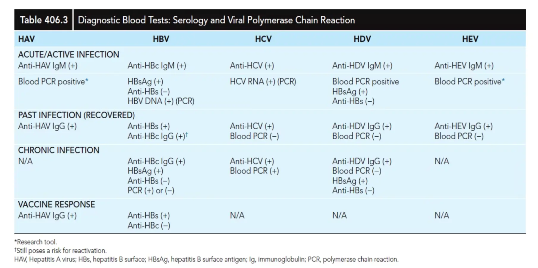 Table 406.3 Diagnostic Blood Tests: Serology and Viral Polymerase Chain Reaction
