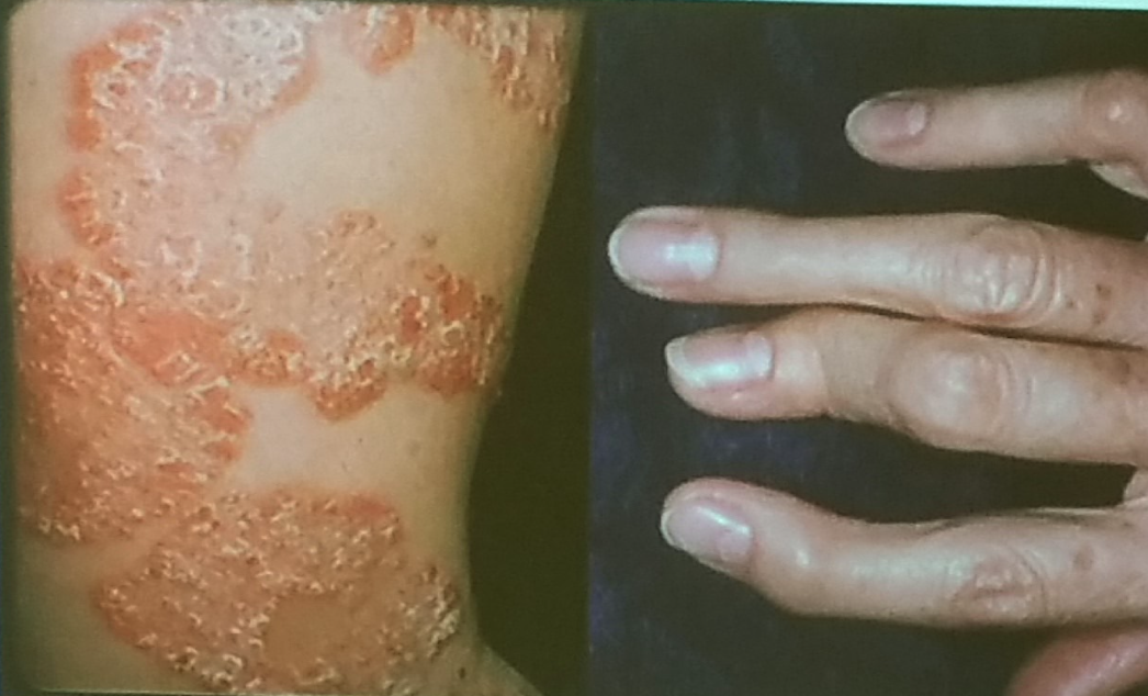 This patient had long standing skin condition as shown in clinical photograph. She developed deformity in joints as shown in photograph.