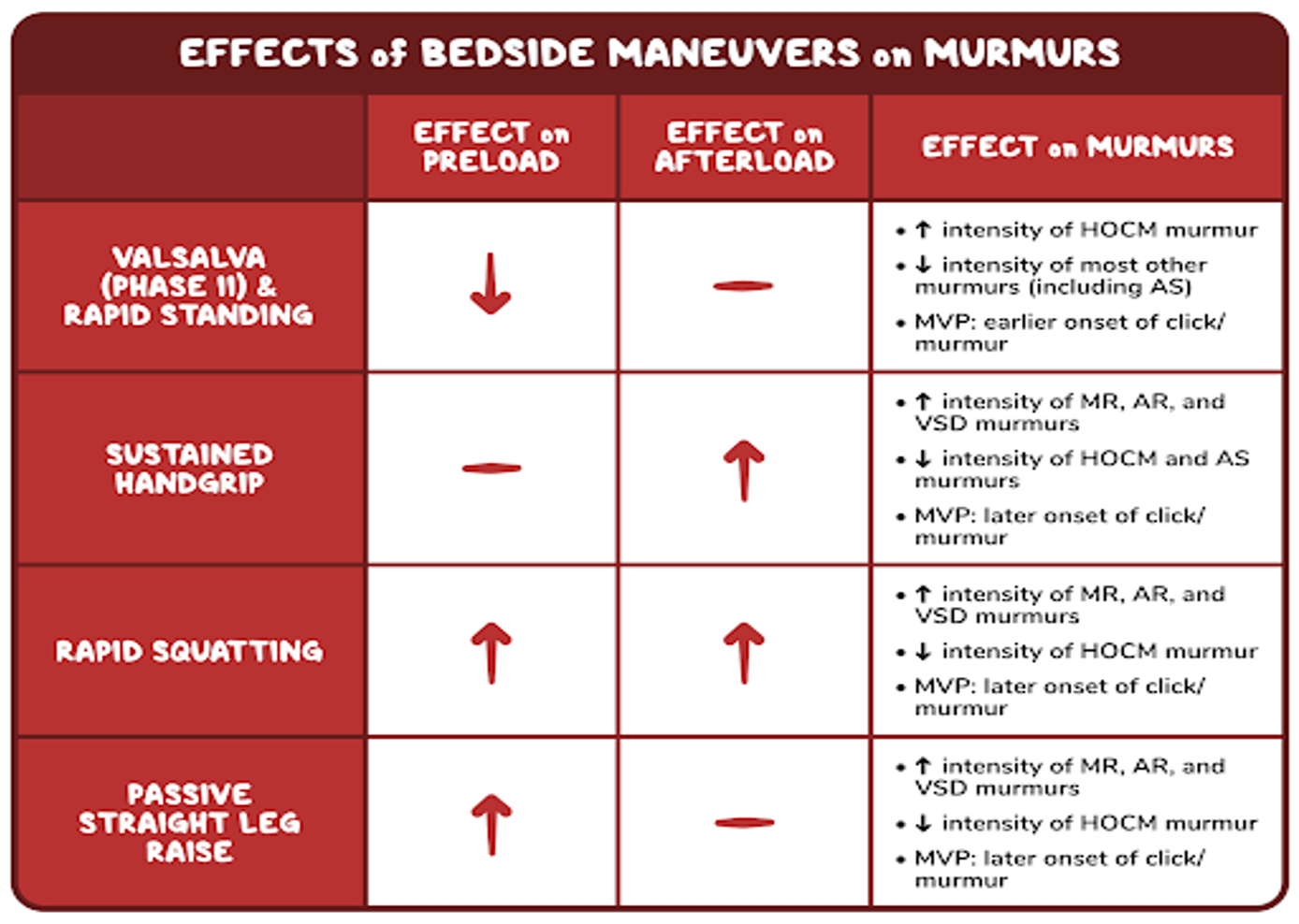 | (Holosystolic/Pansystolic) MR = mitral regurgitation TR = tricuspid regurgitation VSD = ventricular septal defect | (Mid-late Diastolic/ decrescendo- crescendo) MS = mitral stenosis TR = tricuspid stenosis |