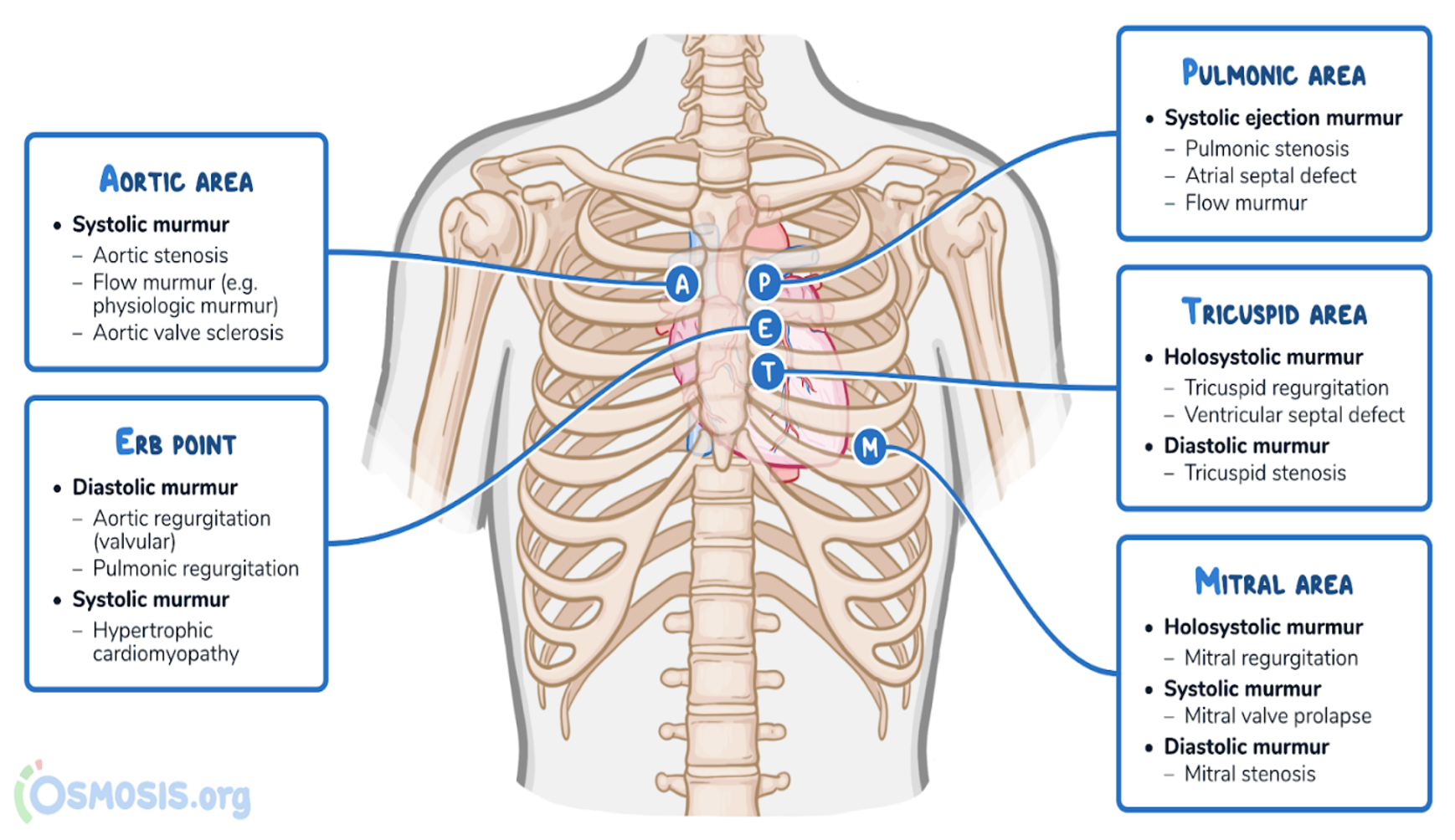 Points of auscultation Mitral + Tricuspid + ERB’s point + Aortic + Pulmonary