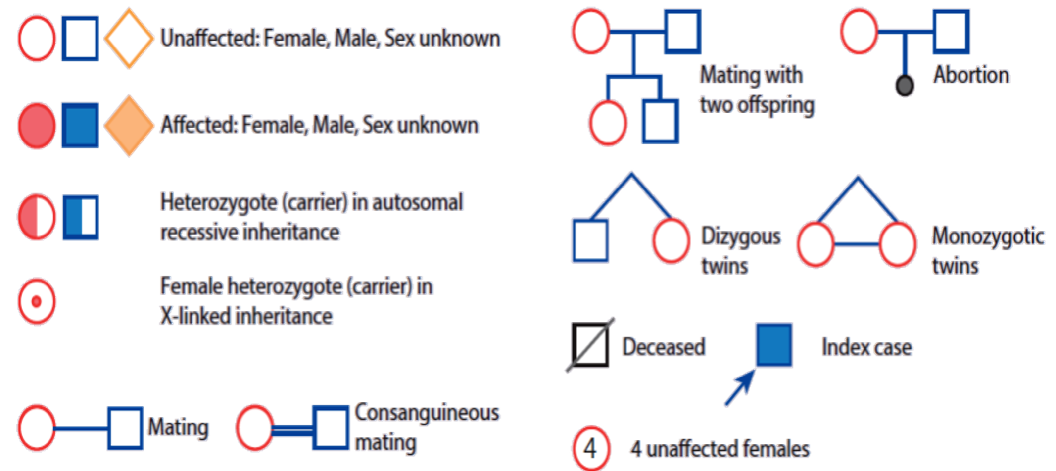 When constructing a pedigree, ask about miscarriages, stillbirths, and consanguinity. Take details from both sides of the family and record dates of birth rather than current ages.