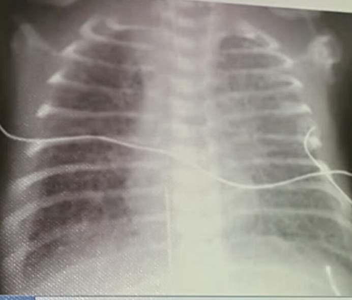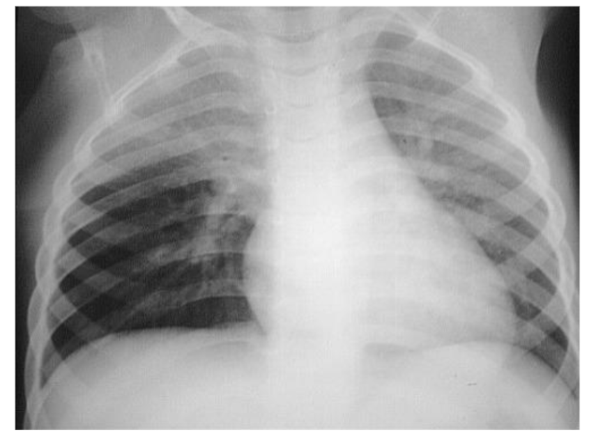 What is the likely diagnosis based on the chest X-ray? Left to Right Shunt, possibly ASD or VSD, leading to congestive lung.