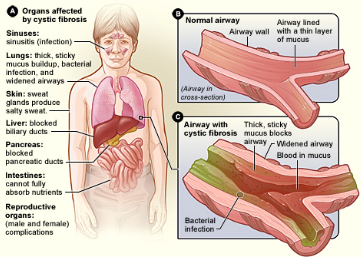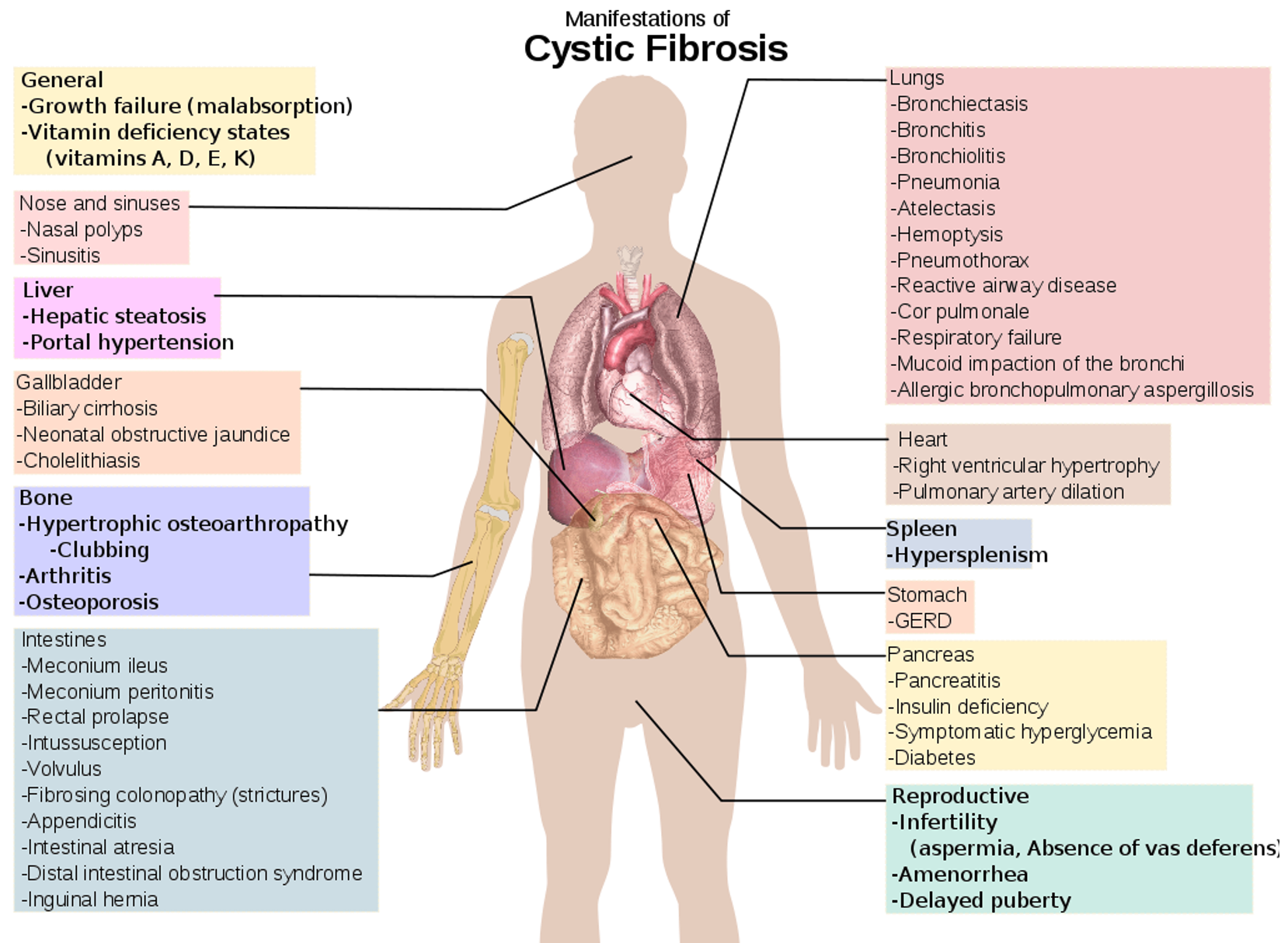 Cystic fibrosis (CF) is a disease of exocrine gland function that involves multiple organ systems but chiefly results in chronic respiratory infections, pancreatic enzyme insufficiency, and associated complications.