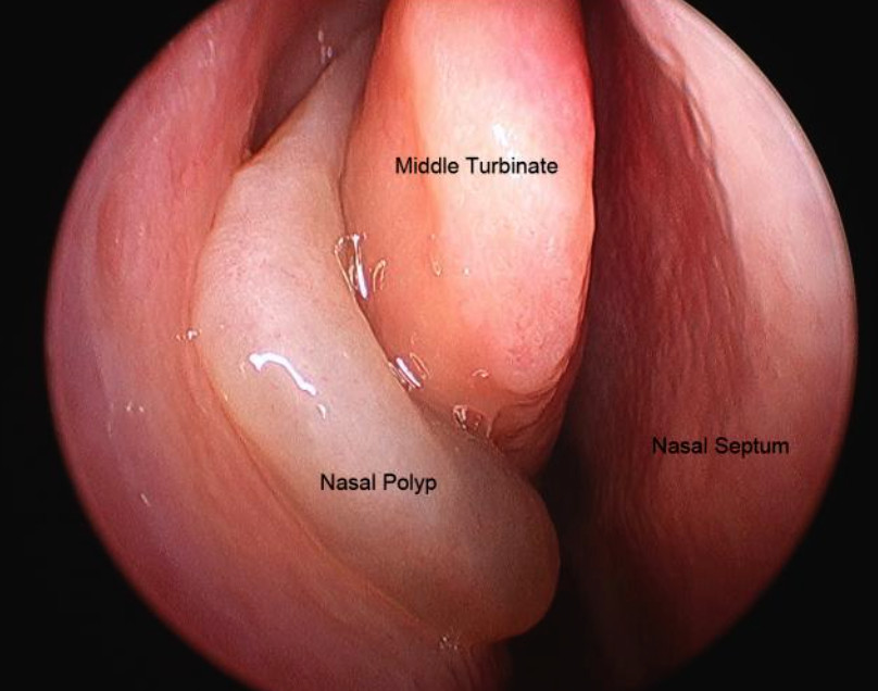 - Dyspnea on exertion, history of chest pain, recurrent sinusitis, nasal polyps; Sinusitis, and hemoptysis.