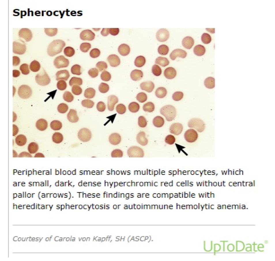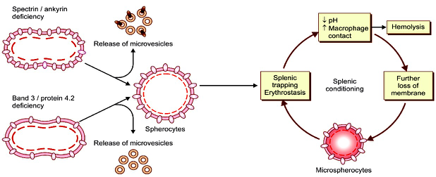 • Defect: Deficiency of Beta Spectrin or Ankyrin → Loss of membrane surface area → becomes more spherical → Destruction in Spleen.