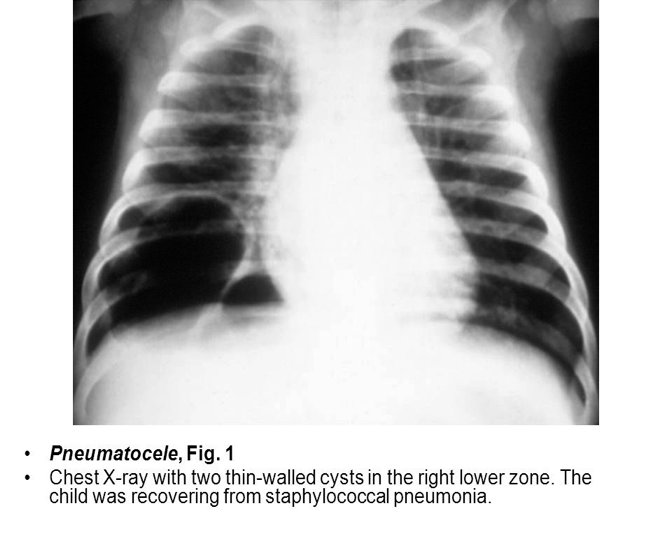 Pneumatoceles are thin-walled, air-containing cysts of the lungs.