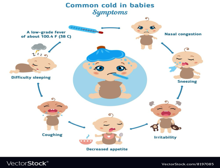 - Fever, irritability, sneezing.