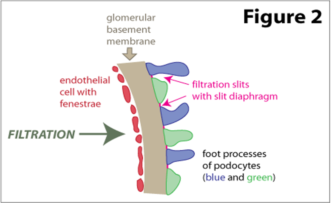 - Visceral epithelium of Bowman’s capsule (podocytes with foot processes)
