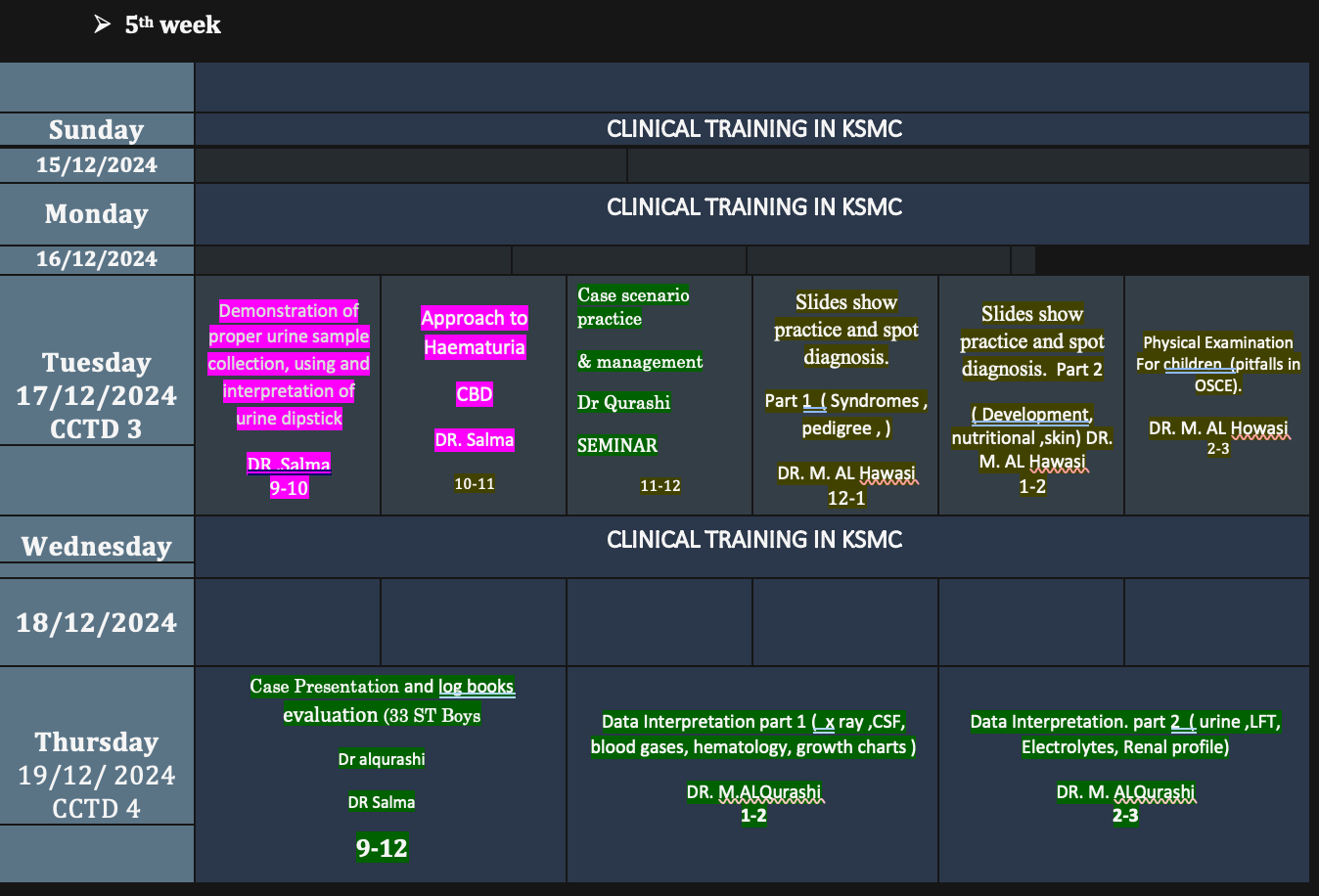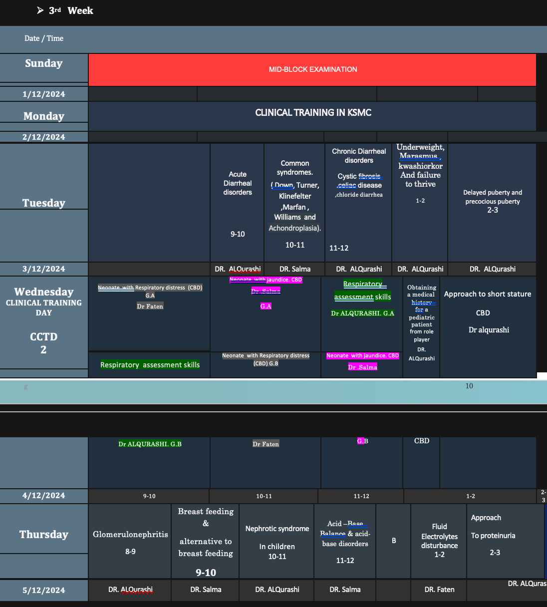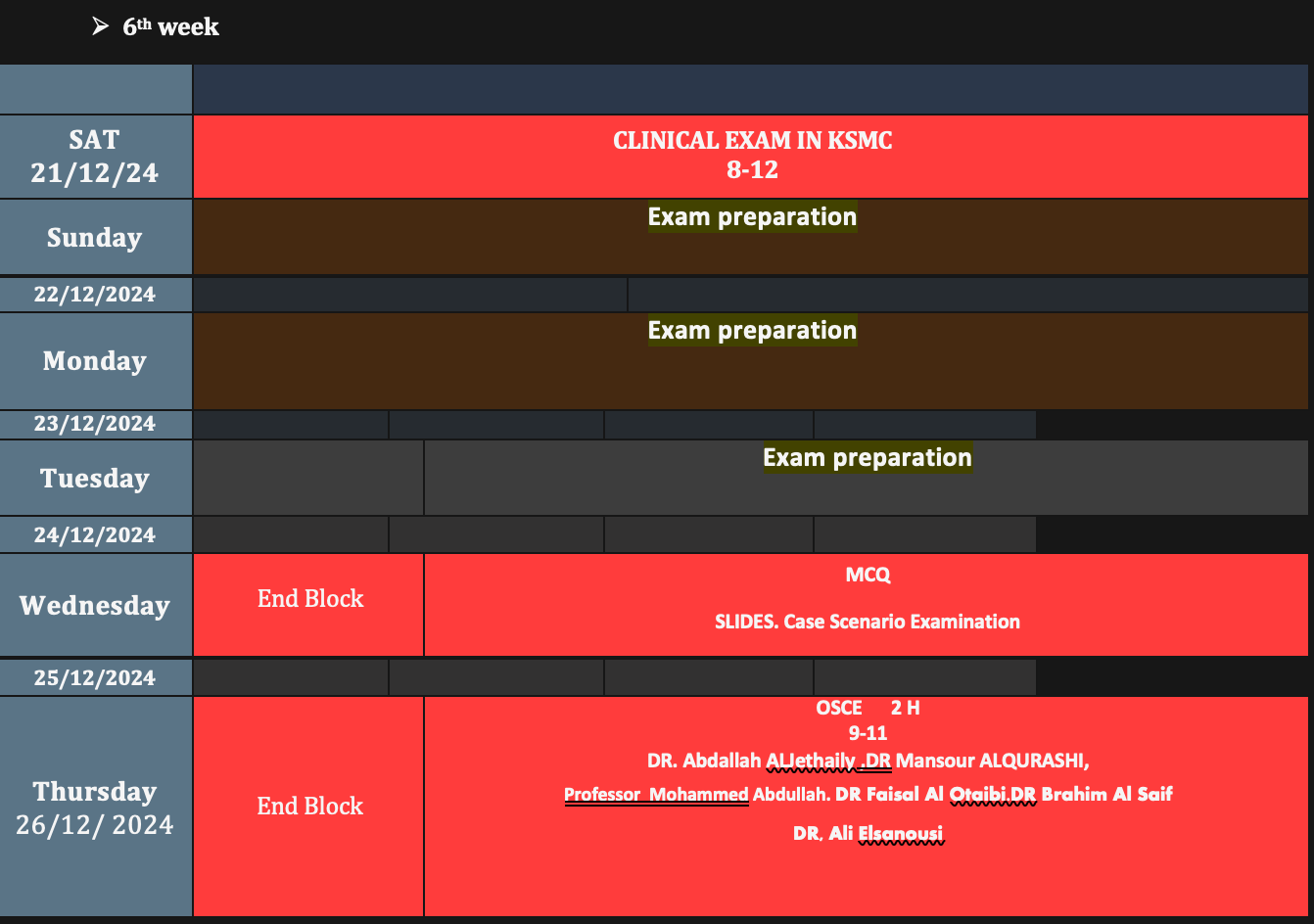 - Assessment of student case presentations and log books evaluation. - DR. Mansour ALQurashi