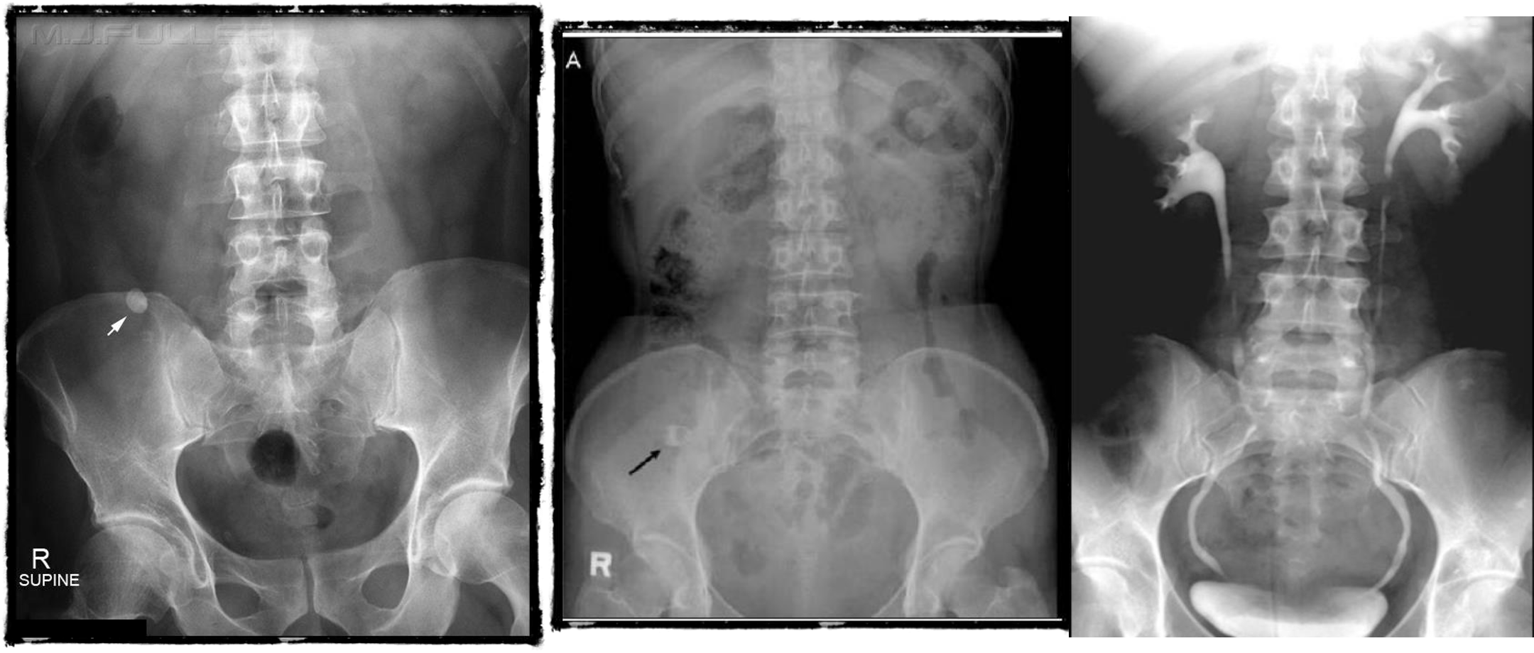 - radioopaque shadow on RUQ - renal stone